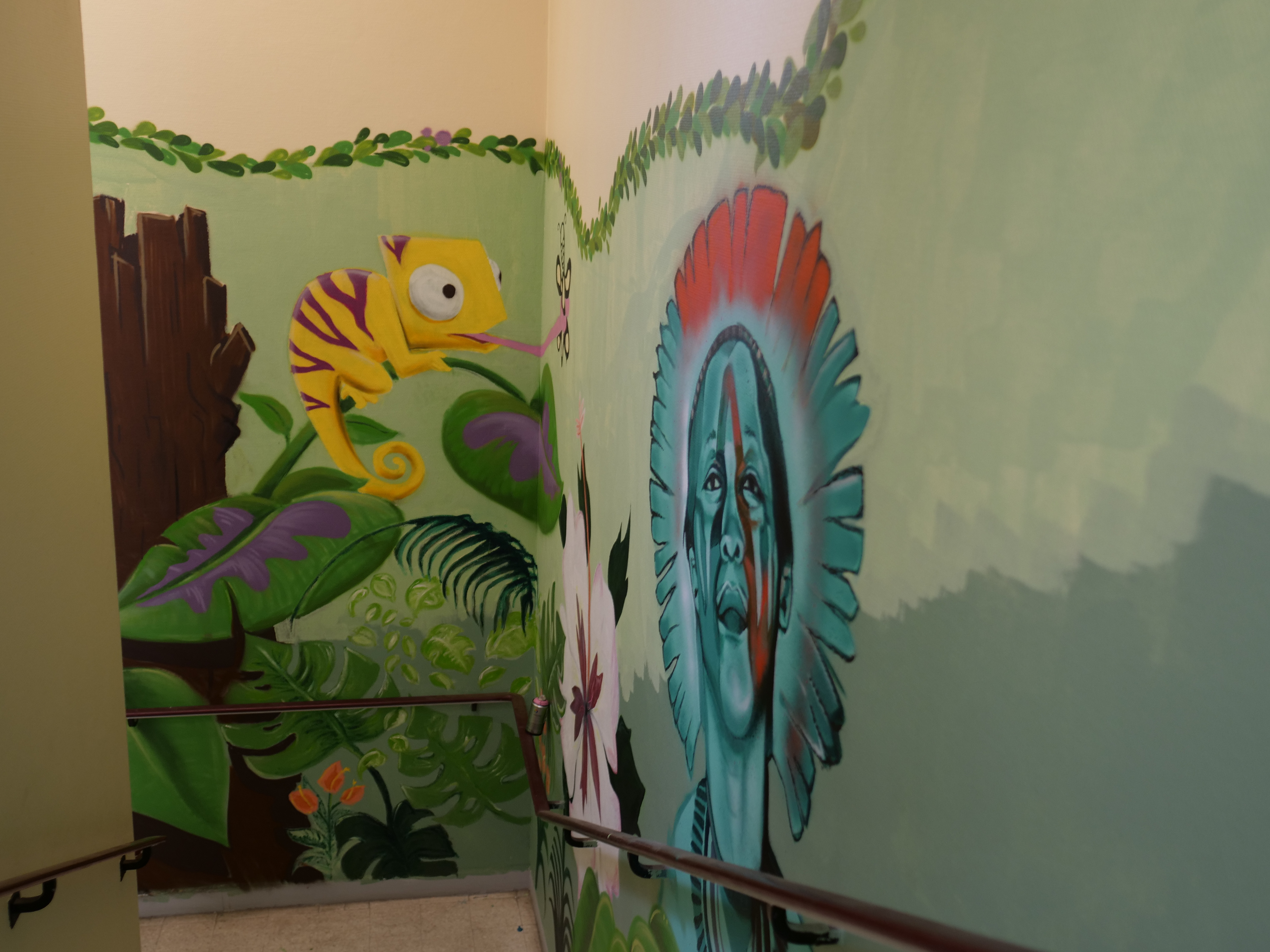 Fresque réalisée dans le tiers-lieu Lapostroff avec Jomad, Claudia De Loret, Alexis Gombert et les autres résidents.